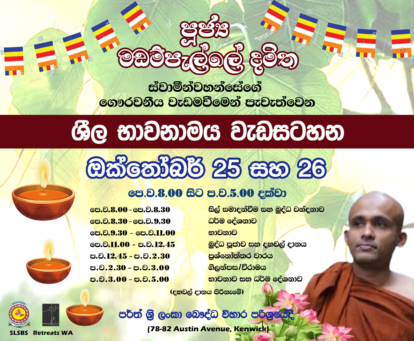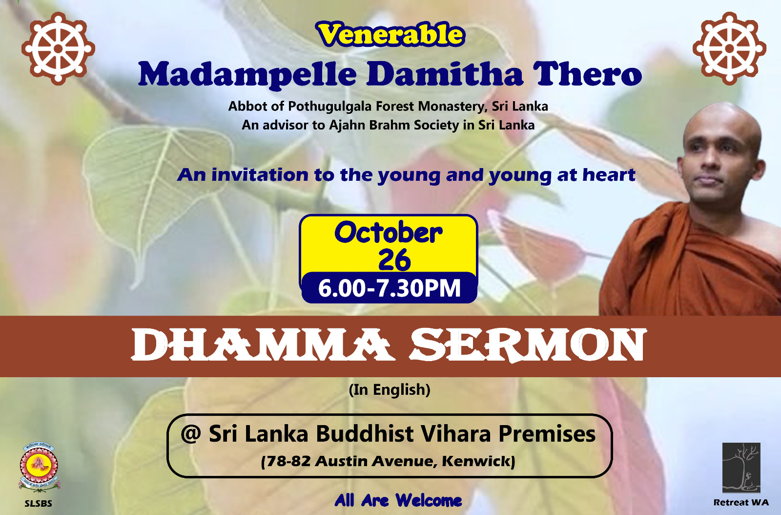 Most Venerable Madampella Damitha Thero October 19th @ 6.00PM Dhamma Sermon