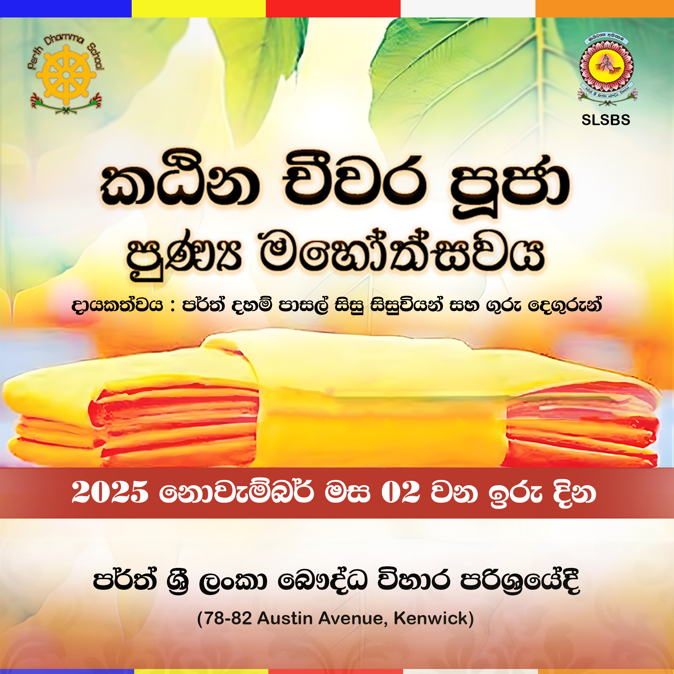කඨින චීවර පූජා පුණ්ය මහෝත්සවය Katina Ceremony – 2025 Sunday 2nd November @ Perth Sri