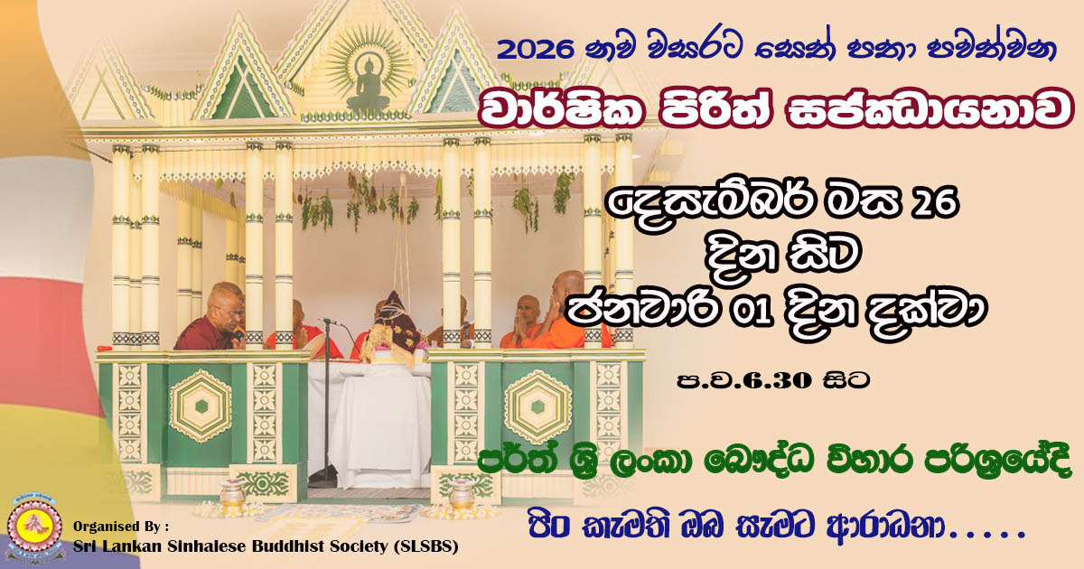 වස් ආරාධනා පිංකම – ජූලි මස 10 බ්රහස්පතින්දා – සවස 7.00 ට